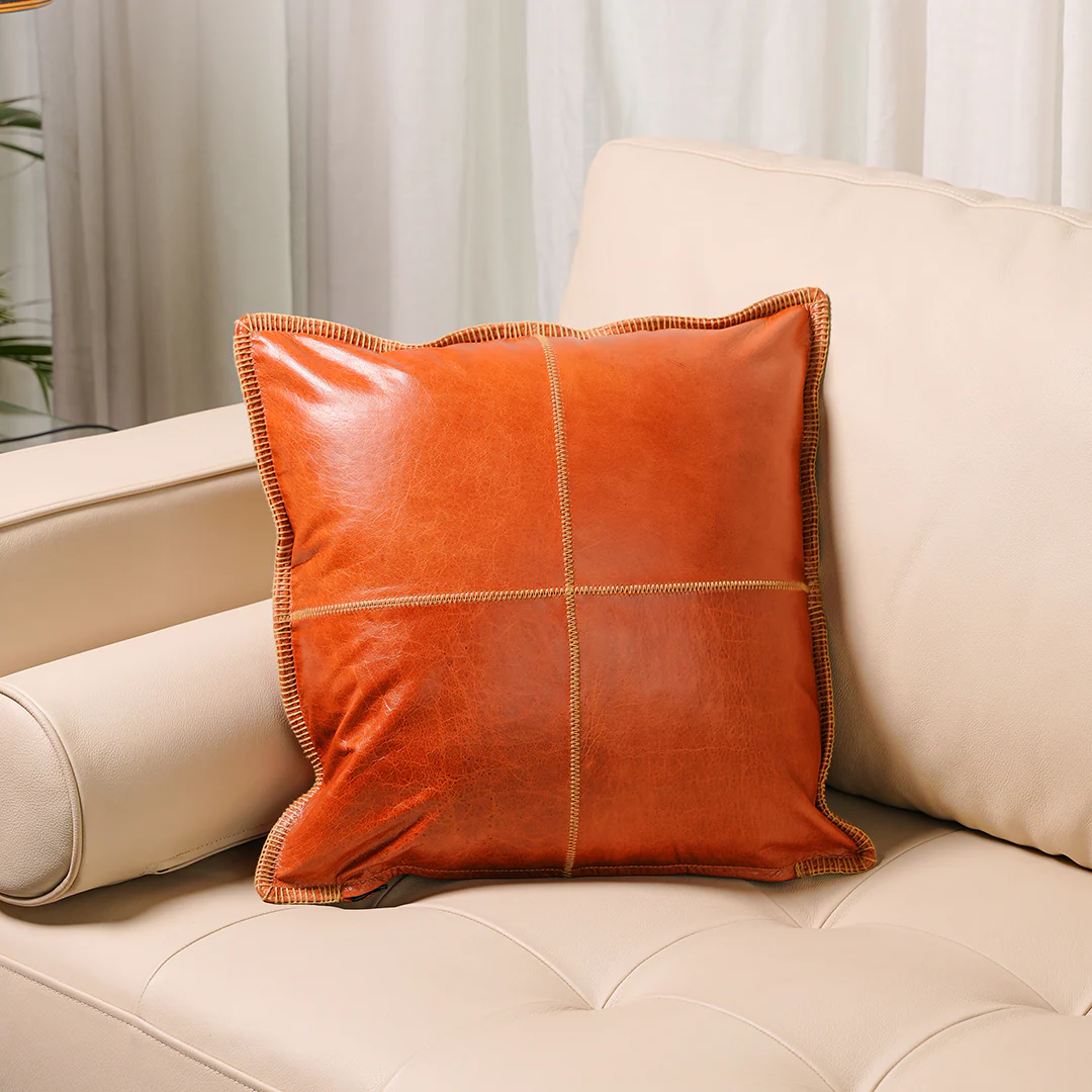 Elevate your living space with the Grid Cushion Cover—a piece that blends modern sophistication with timeless craftsmanship. Handcrafted from 100% genuine cow leather in a rich, deep tone, this cushion cover features a distinctive grid-stitched pattern that adds both structure and warmth to any room.